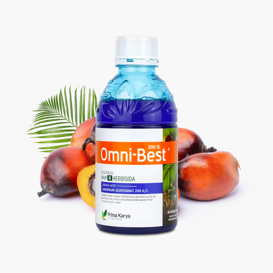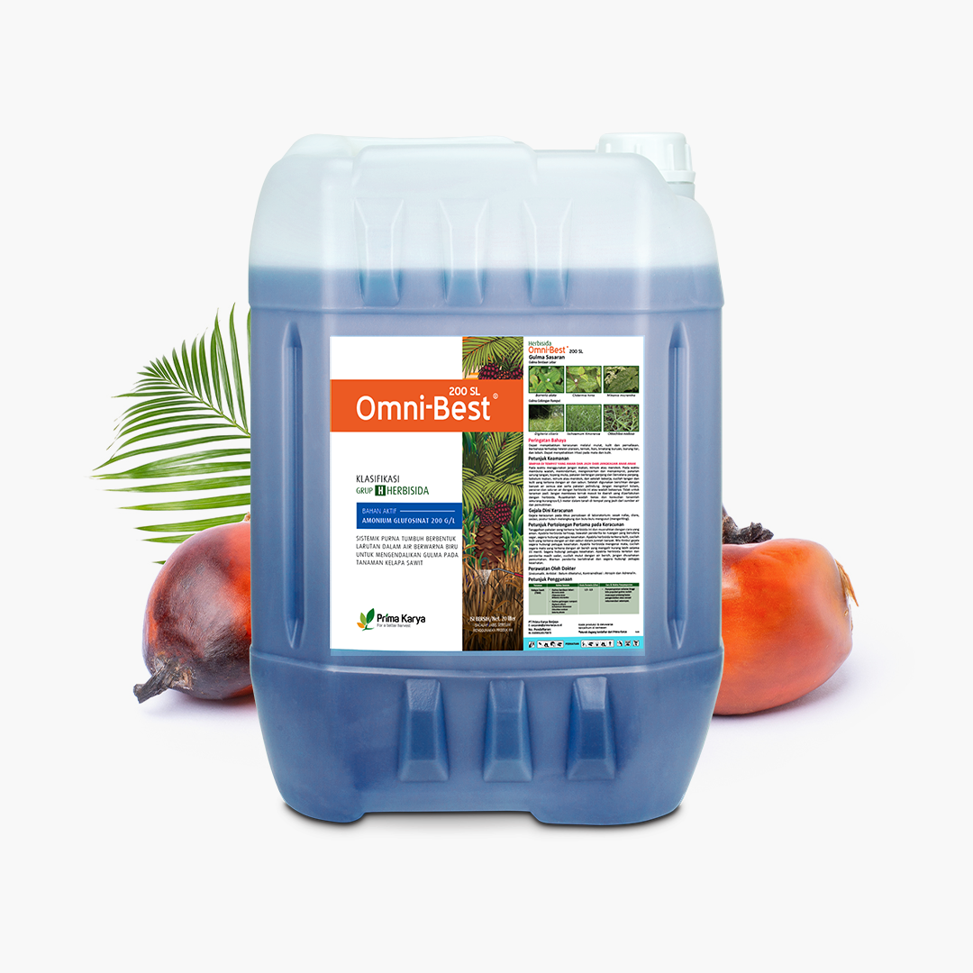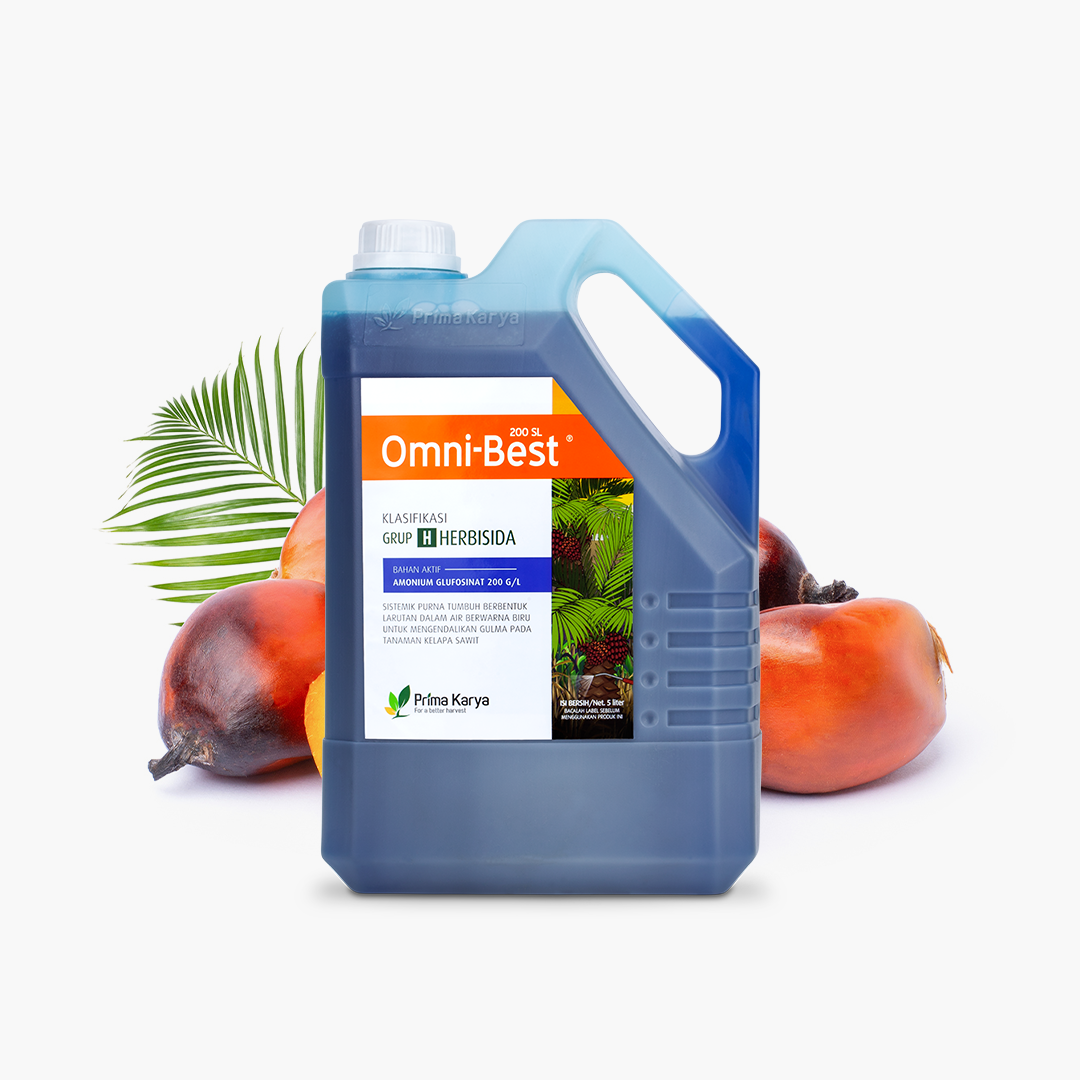 Herbisida Sistemik Purna Tumbuh Dengan Bahan Aktif Ammonium Glufosinat 200 G/L Berbentuk Larutan Dalam Air Berwarna Biru Untuk Mengendalikan Gulma Pada Tanaman Kelapa Sawit.